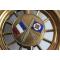 Rare et importante mascotte signée Charles Massin, Paris Réservée aux membres de l'Automobile Club de France entre 1905 et 1915 Réalisée en laiton repoussé et ornée du sigle émaillé de l'A.C.F au recto et des drapeaux français et ACF au verso sur une partie du bouchon de radiateur d'origine et un socle en bois vernis hauteur : 20 cm largeur : 11,6 cm Bibliographie : Automobile Club de France de Lucien Bernard, les éditions de l'Automobile Club de France de mars 2012, reproduite page 93 bon état, voir photos, un petit manque d'émail sur le drapeau de l'ACF