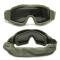Ce masque protection balistique est robuste et réglable, comprenant des lentilles de lunettes de soleil teintées, un chiffon de nettoyage et un étui en toile noire.