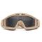 Ce masque protection balistique est robuste et réglable, comprenant des lentilles de lunettes de soleil teintées, un chiffon de nettoyage et un étui en toile noire.