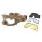 Look tactique, double écran thermal pour éviter la formation de buée, écran anti-statique et anti-rayures. Elastique de tête réglable en longueur Events de ventilations amovibles Mousses confortables Housse de protection incluse 3 écrans Thermals inclus : transparent, fumé (smoke) et jaune. Ce masque vous protège lors de vos parties d'airsoft. Grace à sa technologie double écran, il réduit drastiquement l'apparition de buée et vous garanti un confort de jeu inégalé, le tout en étant aux normes CE EN166.