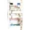Les photos sont sombres, mais l’armoire est entièrement blanche. La rangée centrale est libre et peut accueillir d’autres disjoncteurs.