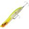 - Une assez forte densité: ce leurre est lesté sur l'arrière (plaque de plomb, intégrée dans le leurre), ce qui permet d'atteindre de très longues distances, au lancer. De plus, ce lestage très en arrière, favorise une bonne précision des lancers.