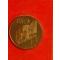 Médaille commémorative dans son étui,  inscription recto : Caen Normandie 44, verso : Liberté pour l'Europe 1944-1984, en métal doré, 3 cm de diamètre