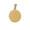 Médaille ronde en acier inoxydable doré, à personnaliser avec un visuel et un texte (gravure laser, aspect gris foncé).