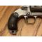 La mécanique est correcte. L'encoche d'armement est subtile, mais présente. Le ressort du chien est lourd, ce qui explique qu'autrefois, le chien était principalement armé entre le pouce et l'index. L'encoche d'armement tient fermement. Le barillet s'indexe correctement. La languette de démontage libère le canon et tourne correctement. Cependant, la goupille du barillet n'est pas d'origine (probablement refaite dans une ancienne armurerie de l'époque) et dépasse de la longueur de la cartouche (ce qui n'affecte pas l'extraction). L'anneau d'extraction est manquant, mais les cartouches tombent quand même. Le canon se verrouille toujours bien sur la carcasse. Les poignées s'adaptent parfaitement et sont d'origine.