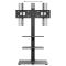 Ce meuble est conçu pour accueillir des téléviseurs de 32 à 65 pouces, offrant un pivotement de 25° à gauche et à droite pour un angle de vision optimal. Fabriqué en acier robuste et en verre, il assure une grande durabilité et un design moderne qui s'intègre facilement dans tout décor.