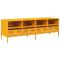 Contenu de la livraison : 1 x Meuble TV jaune moutarde 135x39x43,5 cm acier laminé à froid 1 x Manuel d'instructions