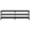 Caractéristiques techniques : Couleur : Chêne noir Matériaux : Bois d'ingénierie et fer Dimensions hors tout : 160 x 30 x 50 cm Hauteur des jambes : 10 cm Avec 3 étagères Poids maximal : 60 kg Assemblage requis : Oui