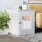 Meuble de cage pour chiens blanc 55x75x65 cm bois d'ingénierieCe meuble de cage pour chien, servant à la fois de cage pour chien et de table d'appoint, constitue un supplément pratique et accrocheur à votre salon. Construction robuste : la niche est faite de fils d'acier et de bois d'ingénierie, assurant à la fois sécurité et durabilité. Le bois d'ingénierie est d'une qualité exceptionnelle avec une surface lisse et présente également résistance, stabilité et résistance à l'humidité.Fonction 2 en 1 : cette niche pour chien allie parfaitement style et fonctionnalités. Elle offre non seulement à votre ami à quatre pattes un endroit confortable pour faire une sieste, mais sert également de table d'appoint pour que vous puissiez placer vos décorations préférées.Design avec ventilation : les fenêtres en fil d'acier permettent à l'air de circuler correctement dans la cage et évitent les mauvaises odeurs, créant ainsi un environnement de sommeil confortable pour vos chiens.Porte verrouillable : cette cage pour chien est équipée d'une porte verrouillable pour plus de sécurité. En outre, vous pouvez installer la porte à gauche ou à droite selon vos besoins.