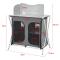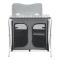 Ce meuble de cuisine d'extérieur permet un usage polyvalent et se range facilement grâce au sac de transport et à son caractère pliable. Le plan de travail vous offre une surface pratique pour les préparatifs. Quant à l'intérieur, les compartiments fermés permettent de ranger vos outils, assiettes et verres.