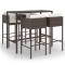 Meubles de bar de jardin 5pcs et coussins Résine tressée MarronCet ensemble élégant de bar de jardin vous permet de passer des moments agréables et confortables avec votre famille et vos amis. Fabriqué en résine tressée résistante aux intempéries et imperméable, cet ensemble de bar d'extérieur est facile à nettoyer, résistant à l'usure et adapté à un usage quotidien. Le cadre en acier enduit de poudre rend la table et les tabourets solides et durables. Le dessus de table en verre trempé est idéal pour placer des boissons, de la nourriture ou des objets décoratifs. Le repose-pied et les coussins ajoutent également un confort d'assise supplémentaire au tabouret. Grâce à la construction légère, tous les articles sont faciles à déplacer. Remarque : afin de prolonger la durée de vie des meubles d'extérieur, nous vous recommandons de les protéger avec une housse imperméable. Maximum 110 kg par siège. Soyez conscient du risque de feu ouvert et d'autres sources de forte chaleur à proximité de l'appareil.
