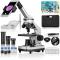 Livraison: microscope, malette de transport, 2 oculaires, 3 objectifs, lentilles Barlow, diapositives, lamelles, pipette, moyens de confinement, Microtome, kit de culture de crevettes, piles, mode d´emploi
