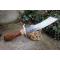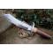 Mini Katana Dao Lame Acier Damas 256 Couches Manche Bois Garde Nickel Etui Cuir Fabric Artisanale