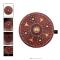 Bien que cette mini-Targe faite à la main ne soit que la moitié de la taille d'un bouclier rond écossais classique, elle n'est en aucun cas inférieure à ses homologues plus grandes. Il est fait de bois et recouvert de cuir véritable traité, qui est fixé tout autour avec des rivets en laiton. Un bossage en laiton est fixé au milieu du bouclier. La façade joliment décorée est somptueusement décorée de gaufrage dans le style celtique et parsemée de nombreux rivets décoratifs en laiton. Le dos du bouclier, qui est recouvert de daim, est pourvu de deux chaînes dites de bouclier (sangles de maintien) en cuir solide et robuste, qui sont fermement fixées en position avec des rivets en laiton.