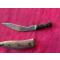Mini Kukri avec son étui en bois, les pierres sur le pommeau sont usées mais la couleur est toujours présente, la lame à été aiguisée et coupé bien, dimensions avec son étui, longueur : 17,5 cm, et longueur de la lame : 10 cm. Pas de prix de réserve.