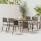 Mobilier à dîner d'extérieur 5 pcs Résine tressée GrisCe mobilier à dîner d'extérieur, au design élégant, est un excellent choix pour vos repas ou vos moments de détente sur votre patio ou dans votre jardin. Matériau de qualité supérieure : l'ensemble de salle à manger de jardin est conçu avec de la résine tressée imperméable, ce qui le rend facile à nettoyer, résistant à l'usure et adapté à une utilisation quotidienne à l'extérieur.Cadre robuste : doté d'un cadre en acier, la table et les chaises sont durables et stables.Chaises confortables : les chaises de jardin sont conçues dans une forme plus ergonomique pour un confort maximal.Table pratique : le dessus de table est en bois d'acacia solide pour un support résistant, facile à nettoyer et à entretenir. Remarque :Afin de prolonger la durée de vie de votre mobilier d'extérieur, nous vous recommandons de le protéger avec une housse imperméable. Maximum 110 kg par siège.