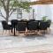 Mobilier à dîner d'extérieur 7 pcs Résine tressée NoirCe mobilier à dîner d'extérieur, au design élégant, est un excellent choix pour vos repas ou vos moments de détente sur votre patio ou dans votre jardin. Matériau de qualité supérieure : l'ensemble de salle à manger de jardin est conçu avec de la résine tressée imperméable, ce qui le rend facile à nettoyer, résistant à l'usure et adapté à une utilisation quotidienne à l'extérieur. Cadre robuste : doté d'un cadre en acier, la table et les chaises sont durables et stables. Chaises confortables : les chaises de jardin sont conçues dans une forme plus ergonomique pour un confort maximal. Des coussins sont inclus pour un soutien supplémentaire. Table pratique : le dessus de table est en bois d'acacia solide pour un support résistant, facile à nettoyer et à entretenir. Remarque : Afin de prolonger la durée de vie de votre mobilier d'extérieur, nous vous recommandons de le protéger avec une housse imperméable. Maximum 110 kg par siège. Soyez conscient du risque de feu ouvert et d'autres sources de forte chaleur à proximité de l'appareil. ,