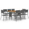 Mobilier à dîner d'extérieur 9 pcs Résine tressée GrisCe mobilier à dîner d'extérieur, au design élégant, est un excellent choix pour vos repas ou vos moments de détente sur votre patio ou dans votre jardin. Matériau de qualité supérieure : l'ensemble de salle à manger de jardin est conçu avec de la résine tressée imperméable, ce qui le rend facile à nettoyer, résistant à l'usure et adapté à une utilisation quotidienne à l'extérieur.Cadre robuste : doté d'un cadre en acier, la table et les chaises sont durables et stables.Chaises confortables : les chaises de jardin sont conçues dans une forme plus ergonomique pour un confort maximal.Table pratique : le dessus de table est en bois d'acacia solide pour un support résistant, facile à nettoyer et à entretenir. Remarque :Afin de prolonger la durée de vie de votre mobilier d'extérieur, nous vous recommandons de le protéger avec une housse imperméable. Maximum 110 kg par siège.