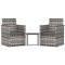 Mobilier d'extérieur 3 pcs avec coussins Résine tressée GrisCet ensemble de salon d'extérieur tendance, au design élégant et contemporain, est un excellent choix pour manger ou vous détendre dans votre jardin. Matériau durable : le polyéthylène (PE) est la matière plastique la plus utilisée. Son utilisation dans les meubles est pratique car il est résistant aux UV, léger et facile à entretenir.Table exquise : la table élégante est un excellent endroit pour placer des boissons, de la nourriture et des décorations. Elle est d'une belle apparence et facile à nettoyer. Elle est un supplément parfait à votre jardin et à votre terrasse, créant une impression durable !Expérience de siège confortable : des coussins supplémentaires sont inclus pour votre confort. Remarque :Afin de prolonger la durée de vie de votre mobilier d'extérieur, nous vous recommandons de le protéger avec une housse imperméable.Chaque produit est livré avec un manuel de montage dans la boîte pour un montage facile.