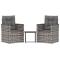Mobilier d'extérieur 3 pcs avec coussins Résine tressée GrisCet ensemble de salon d'extérieur tendance, au design élégant et contemporain, est un excellent choix pour manger ou vous détendre dans votre jardin. Matériau durable : le polyéthylène (PE) est la matière plastique la plus utilisée. Son utilisation dans les meubles est pratique car il est résistant aux UV, léger et facile à entretenir.Table exquise : la table élégante est un excellent endroit pour placer des boissons, de la nourriture et des décorations. Elle est d'une belle apparence et facile à nettoyer. Elle est un supplément parfait à votre jardin et à votre terrasse, créant une impression durable !Expérience de siège confortable : des coussins supplémentaires sont inclus pour votre confort. Remarque :Afin de prolonger la durée de vie de votre mobilier d'extérieur, nous vous recommandons de le protéger avec une housse imperméable.Chaque produit est livré avec un manuel de montage dans la boîte pour un montage facile.