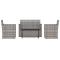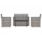Mobilier d'extérieur 4 pcs avec coussins Résine tressée GrisCet ensemble de salon d'extérieur tendance, au design élégant et contemporain, est un excellent choix pour manger ou vous détendre dans votre jardin. Matériau durable : le polyéthylène (PE) est la matière plastique la plus utilisée. Son utilisation dans les meubles est pratique car il est résistant aux UV, léger et facile à entretenir.Table exquise : la table élégante est un excellent endroit pour placer des boissons, de la nourriture et des décorations. Elle est d'une belle apparence et facile à nettoyer. Elle est un supplément parfait à votre jardin et à votre terrasse, créant une impression durable !Expérience de siège confortable : des coussins supplémentaires sont inclus pour votre confort. Remarque :Afin de prolonger la durée de vie de votre mobilier d'extérieur, nous vous recommandons de le protéger avec une housse imperméable.Chaque produit est livré avec un manuel de montage dans la boîte pour un montage facile.