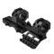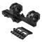 Deux leviers compacts à dégagement rapide à verrouillage automatique pour fixer le support aux rails de type Weaver/Picatinny/MIL STD 1913.
