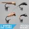 Set de 4 nymphes, spécial pour la pêche de la truite au toc et à vue. Ces modèles ont été étudiées pour s'adapter à un usage précis soit de conditions de luminosité, de type deaux, de poste ou de période de lannée. Nymphe 1 : H16 - Nymphe légère et classée comme nymphe imitative. Modèle inspirée de la célèbre « Pheasant Tail ». Montage jig avec corps en faisan. Bille et cerclage en cuivre pour garder un aspect neutre. Ajout d'un thorax en fibres synthétiques couleur olive pour assurer de légers reflets et mettre en évidence limitation. Nymphe d'ensemble proposant un aspect naturel. Nymphe 2 : H16 - Nymphe courbée légère et classée comme nymphe imitative. Montage sur base noire avec bille et cerclage en argent pour déclencher la curiosité couplé d'un thorax légèrement irisant. Nymphe d'ensemble proposant un aspect naturel. Nymphe 3 : H16 - Nymphe droite légère et classée comme nymphe imitative. Montage en lièvre ébouriffé avec cerques pour obtenir une nage planante et naturelle. Bille et cerclage en cuivre pour garder un aspect neutre. Nymphe 4 : H16 - Nymphe courbée légère et classée comme nymphe imitative. Montage perdigone en corps lisse noir avec cerques qui facilite limmersion. Complémenté d'un tag couleur sang à l'arrière pour apporter un léger signal incitatif à limitation.