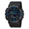 Design et moderne, la montre-bracelet analogique et numérique G-SHOCK Classic GA-100 est robuste grâce à son boîtier en résine résistant aux champs magnétiques, son cadran en verre minéral et son bracelet en résine, un matériau durable et souple Calendrier automatique Heure universelle (29 fuseaux horaires et grandes villes du monde) Affichage de l'heure au format 12/24 Passage manuel à l'heure d'hiver et à l'heure d'été Chronomètre - 1/1000 sec - 100 heures avec signal sonore Comptes à rebours - 1/1 minute - 24 heures avec répétition automatique Affichage de la vitesse moyenne sur une distance parcourue Cinq alarmes quotidiennes Fonction snooze (rappel d'alarme) Diodes électroluminescentes pour un éclairage du cadran par rotation du poignet Étanchéité : jusqu'à 20 bars (ISO 22810) Livrée avec une pile Lithium CR1220 Dimensions : 55 x 51,2 x 16,9 mm Poids : 70 g Couleur : bicolore noir/bleu Garantie : 2 ans