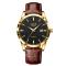 Montre Homme Quartz Bracelet Cuir Vintage Cadran Noir/Or - Boîte Cadeau Incluse + Livraison Offerte
