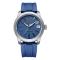 Design moderne : Boîtier en acier inoxydable avec un cadran élégant, accentué par un bracelet en silicone bleu confortable et durable.