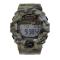 Fonctions intégrées : date, alarme programmable, chronomètre, et rétroéclairage vert.
