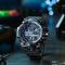 Montre Sport Homme Militaire Etanche Multifonction LED Chrono Double Fuseau Grand cadran 5ATM Bleu