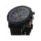 ~ MONTRE NEUVE DANS SON SACHET ~ BRACELET SYNTHÉTIQUE NOIR SURPIQURES BLEUES largeur 22mm POUR UN TOUR DE POIGNET COMPRIS ENTRE 18 ET 23 CM ~ STYLE CHRONOGRAPHE ( PETITS CADRANS UNIQUEMENT DÉCORATIFS) BOITIER MÉTAL NOIR AVEC COURONNE MOBILE DIAM. EXT. 50 mm ~ CADRAN PROFOND DIAMÈTRE 40 mm FOND NOIR MAT AIGUILLES ET CHIFFRES BLEUS ~ POIDS 89 GR ~ UNE PILE D'AVANCE EN PLUS DE CELLE D'ORIGINE ~ .