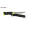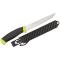 Couteau de pêche long avec dos dentelé pour le détartrage, tandis que la poignée en caoutchouc offre une prise ferme même avec les mains mouillées.