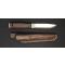 Le manche en polymère marron offre une prise en main sûre, même dans des conditions humides ou froides. Le couteau est accompagné d'un étui en cuir, pratique pour le transport et le rangement.