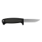 Il est équipé d'une lame en acier carbone C100S, offrant une bonne capacité de coupe et un entretien simple. La géométrie de lame avec émouture scandinave permet un contrôle précis lors des découpes et facilite l'aiguisage.