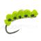 Montage 100 % foam compressé, ce modèle imite la petite chenille « tordeuse » verte, présente en quantité sur les chênes et les saules, en bordure de rivière. Cette chenille est au menu des truites en Avril/ Mai, sur les secteurs aux berges boisées. Le foam compressé sur le dessus de la hampe de l'hameçon permet d'obtenir une imitation compacte, flottant à la perfection, et provoquant un « ploc » discret à l'impact, qui attire l'attention des truites.