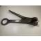 avec un grattoir de plomb sur un manche et une clé à canon sur l'autre.