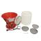 Ce moulin à céréales est fourni avec un fût anti-poussière.