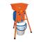Moulin sur pied équipé d'un récipient anti-poussière à poignée qui se referme automatiquement après usage, permettant ainsi de mieux conserver la farine.