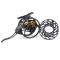 Le frein est utilisé pour la récupération de la soie lors de situations de combat. Très facile à régler grâce au dispositif indiqué sur la photographie, il empêchera au poisson de casser les bas de ligne et permettra au pêcheur de récupérer ou de conserver de la tension de la ligne.