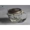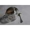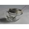 Ancien moutardier en verre et monture en argent massif, poinçons anglais, Birmingham poinçon d'orfèvre : S.M.L., Samuel M Levi petite cuillère en métal argenté bon état