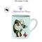 Cette tasse bretonne en faïence est décorée avec le célèbre personnage de bande-dessinée Bécassine, accompagnée d'un crabe.