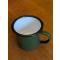 un beau petit mug en acier émaillé de couleur vert chasse, facilement lavable , une idée cadeau pour les chasseurs et les baroudeurs