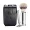 Les manches du rasoir et du blaireau sont en métal chromé.