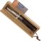 Longueur totale (mm) : 195 Longueur de la lame (mm) : 85 Largeur de la lame (mm) : 18 Épaisseur de la lame (mm) : 1.5 Matériau de la lame : Inox 12C27 modifié Matériau du manche : Cuir Système : Virobloc Poids (g.) : 50 Pays d'origine : France