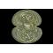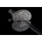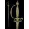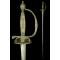 Monture. Monture en laiton à poignée monobloc. Elle est composée d'un pommeau oval, d'une branche, d'annelets ronds réduits, d'un quillon rond mamelonné, d'un écusson réduit, d'un petit pied d'écusson rectangulaire et d'une coquille bivalve. La poignée monobloc est à section rectangulaire. Le pommeau, la branche, la poignée, l'écusson et la coquille sont décorés de médaillons à trophées militaires, ceux de la coquille étant au format paysage. Les médaillons sont flanqués de cartouches grillagées et les éléments de marge de la monture sont décorés de boutons. Cravate absente. Etat correct.
