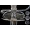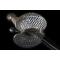 Monture. Monture en argent filigranée d'argent. Elle est composée d'un pommeau rond, d'une branche, d'annelets ronds développés, d'un quillon rond mamelonné, d'un écusson évasé, d'un pied d'écusson rectangulaire et d'une coquille bivalve. Le filigranage se composé une bande d'argent, d'un petit filigrane double, d'une paire de gros filigranes doubles en tresse, puis à nouveau d'un petit filigrane double. Elle est hautement perforée et décorée d'un motif répété de fleurs. Le coin de l'écusson est décoré d'une cartouche rocaille. Les marges de la monture sont décorées de tresses. La coquille porte des traces de réparation. Cravate présente. Bon état.