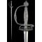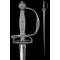 Ce type de monture était populaire entre 1760 et 1770, produites le plus souvent en argent par des orfèvres parisiens. C'est le cas de cet exemplaire, produit entre 1762 et 1768 par "GG", un orfèvre fourbisseur parisien actif pendant la deuxième moitié du XVIIIe mais non identifié à ce jour. Cette épée conserve par ailleur son fourreau, même si le cuir a été reconstitué. Sans jeu, bon état.