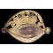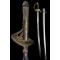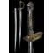 Monture. Monture en laiton doré à trois branches, ornée du décor typique du modèle : deux paires de drapeaux, une branche de chêne, une branche de laurier, ainsi que deux étoiles indiquant le grade de général de brigade. La fusée, filigranée, est encadrée par une virole plus finement ciselée que sur les exemplaires courants. Elle est surmontée d’une calotte à longue queue, dont le médaillon central a été remplacé par un motif de feuillage, toujours entouré de branches de chêne et de laurier. Quillon enroulé orné d’une étoile. L’intérieur de la garde est ciselé à l’identique de l’extérieur. La dorure est en grande partie conservée. Cravate en cuir encore présente. Bon état.